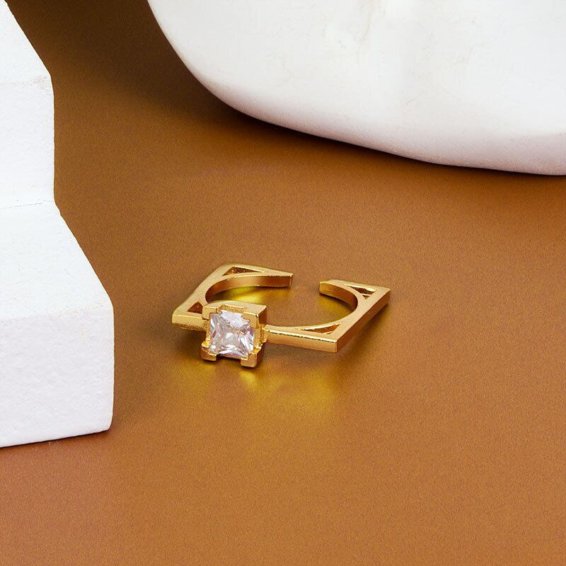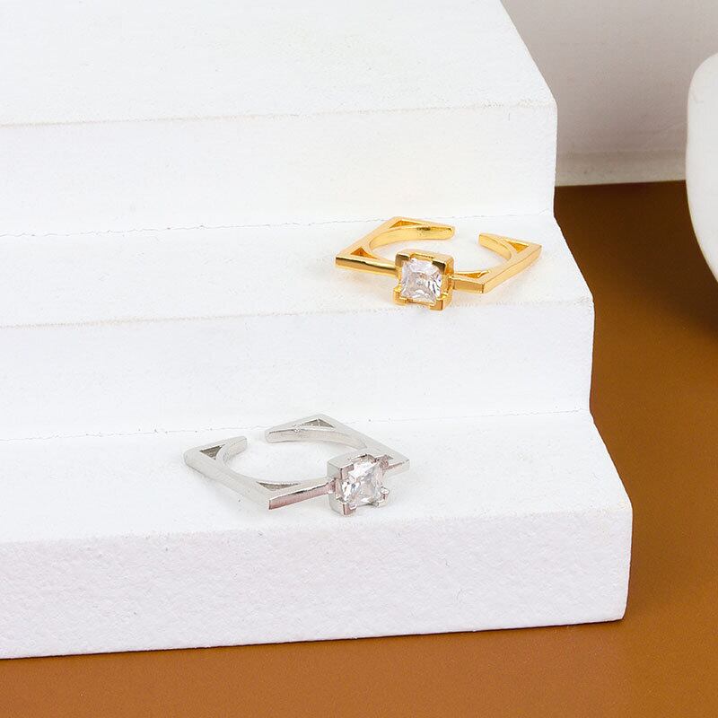 LIVVY シルバーカラークリエイティブスクエア型ジルコンリングチャーム女性ジュエリートレンディなパーティーアクセサリーギフト調整可能 アジャスタブル 指輪 銀 スクウェア Liv64879961351