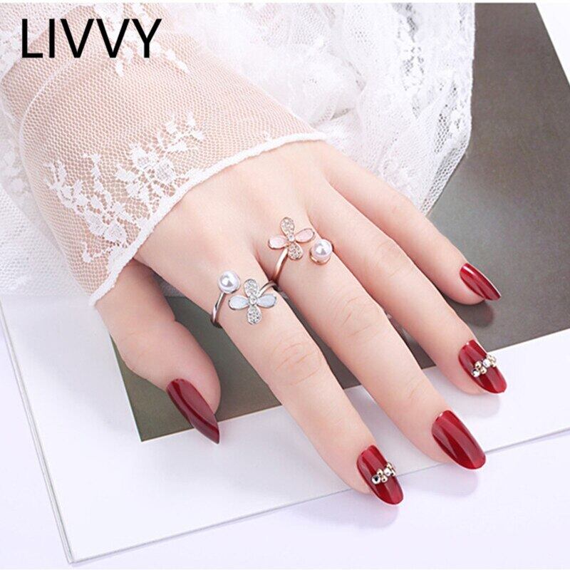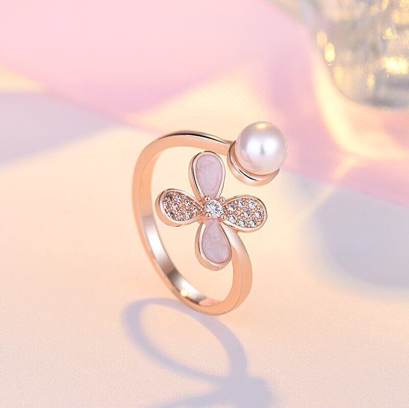 の絶妙なクリスタルジルコンフラワーパールシルバーカラーリング気質甘い愛オープニングリングジュエリー 大人ガーリー スウィート キュート カジュアル 指輪 真珠 フラワーデザイン 銀 Liv48951527938