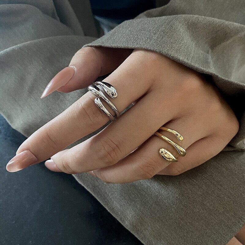 LIVVY ユニークなクールな 3 層不規則な調節可能なシルバーカラーリングレディースメンズトレンディなクリエイティブジュエリーアクセサリー アジャスタブル 指輪 銀 Liv675186672