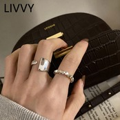 シルバーカラーのシンプルな不規則な幾何学的な滑らかなリング女性ビーズのトレンディな気質人差し指ジュエリー 指輪 銀 Liv30862386874