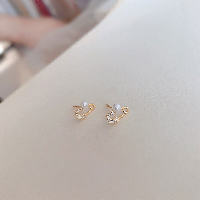 LIVVY シルバーカラー ユニーク ペーパークリップ ジルコン スタッド イヤリング レディース - パール イヤリング ジュエリー アクセサリー 真珠 指輪 銀 Liv36192792378