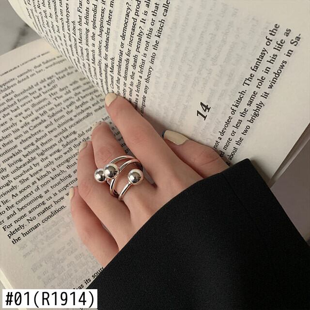LIVVY 2022 シルバーカラーメタルボールオープン誇張リング女性シンプルな幾何学不規則なパーティージュエリー 指輪 銀 Liv29377402659
