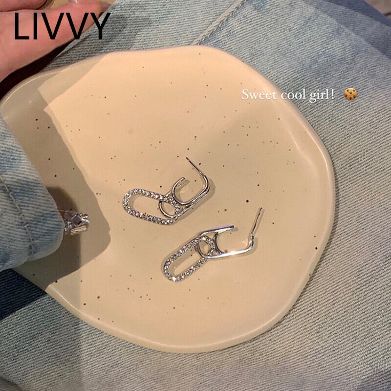 LIVVY シルバーカラー防止アレルギー中空幾何オーバルジルコンイヤリングチャーム女性ガール誕生日パーティージュエリーギフト 指輪 銀 Liv47221326108
