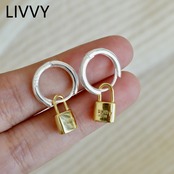 LIVVY シルバーカラー防止アレルギーフープイヤリング女性の夏のトレンディなロックペンダントパーティージュエリーギフト サマー 夏物 指輪 銀 Liv78282449837
