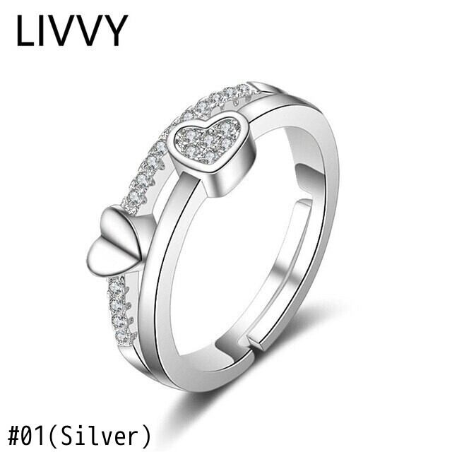 LIVVY シルバーカラースウィート AA ジルコンハート形の二重層調節可能なリング女性の花嫁の宝石類のギフト 大人ガーリー キュート カジュアル アジャスタブル 指輪 銀 Liv73110123299