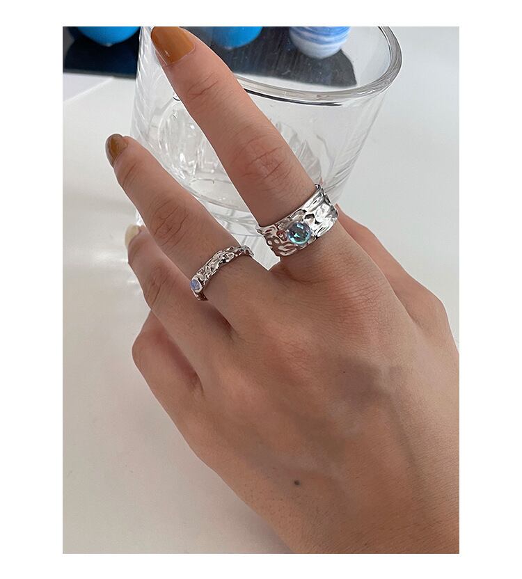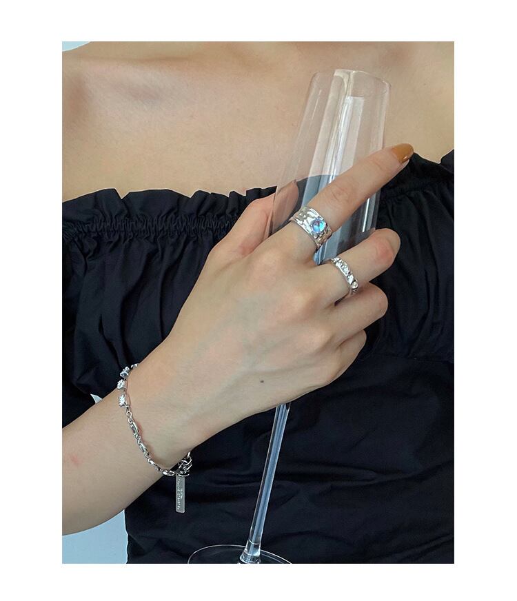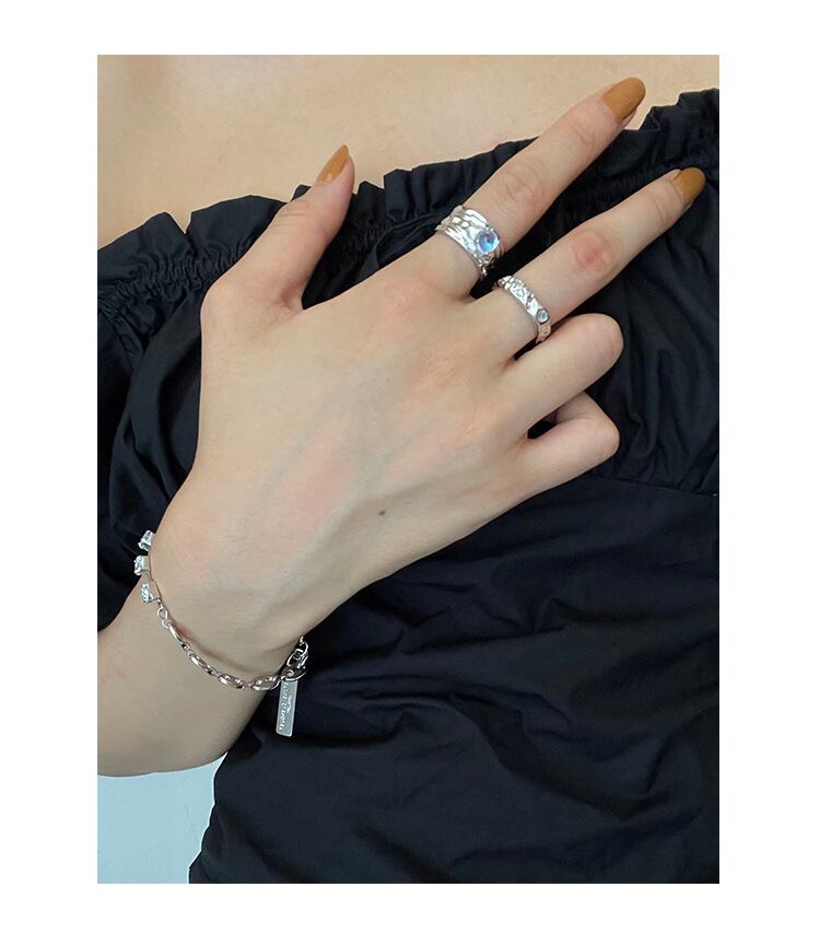 LIVVY シルバー色不規則なスズ箔の質感ムーンストーン調節可能なリング女性気質ファインジュエリー記念 アジャスタブル 指輪 銀 Liv93492186438