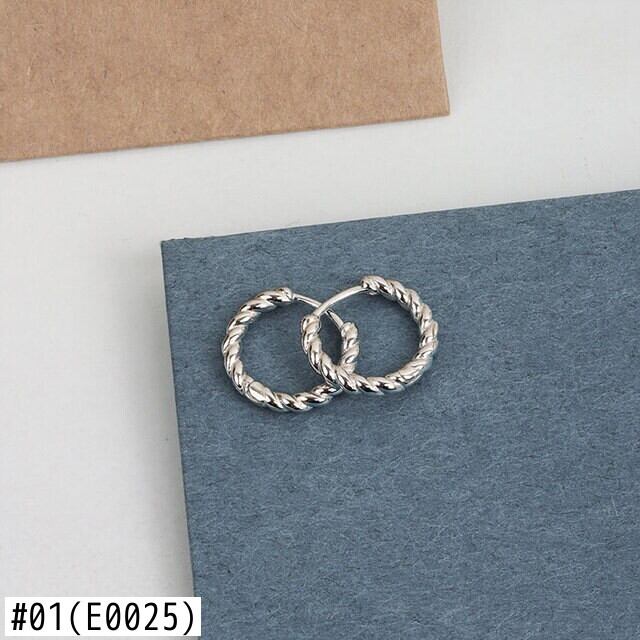 LIVVY シルバーカラーメタルコルゲートツイストサークルフープ光沢凹面イヤリングタイ取り外し可能な女性のイヤリング 指輪 銀 Liv86841685653