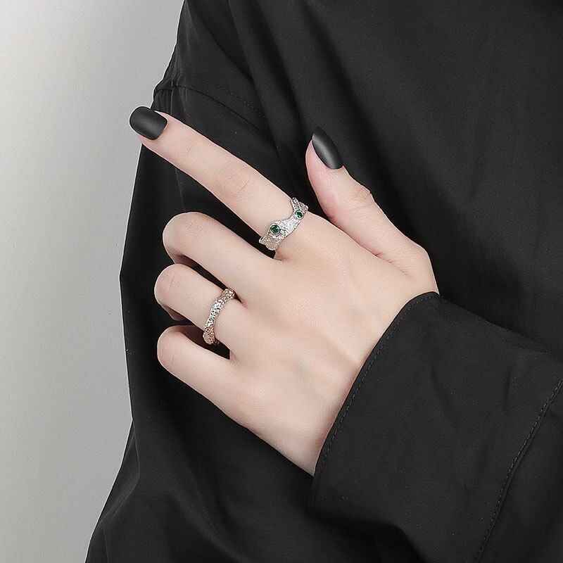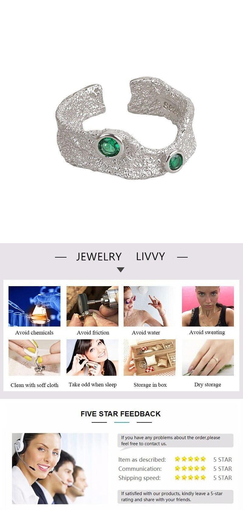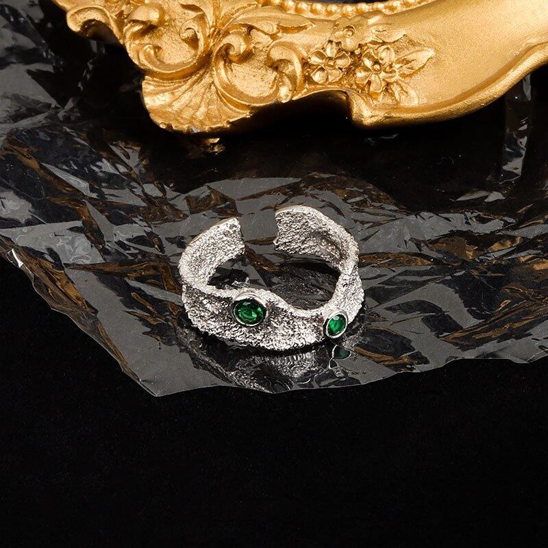 LIVVY シルバーカラー ラフ イレギュラー グリーン ジルコン リング ロマンチック カップル ハンドメイド ジュエリー 指輪 銀 Liv7285361536