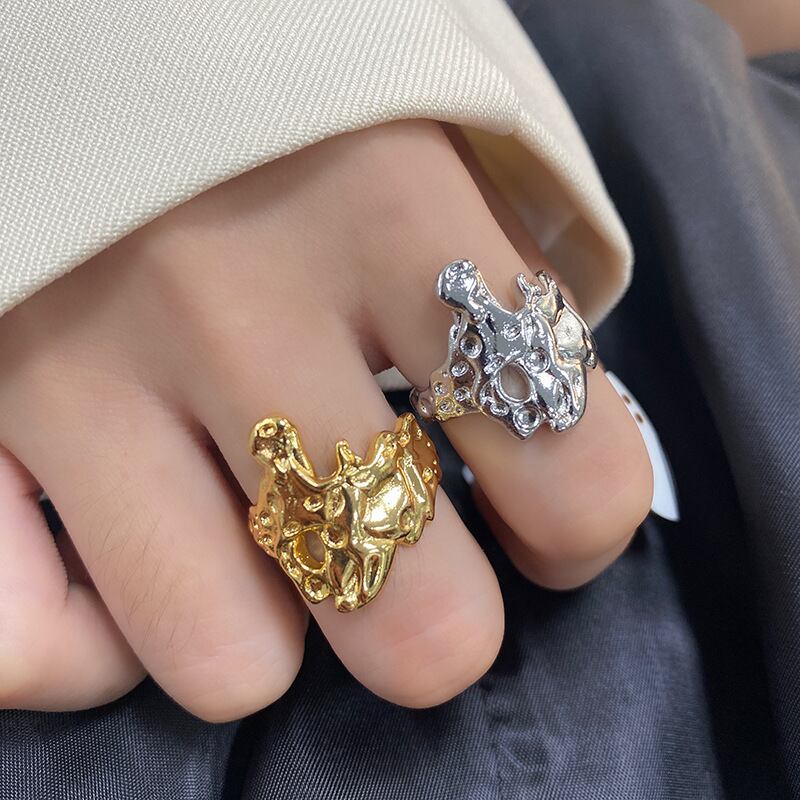 LIVVY シルバーカラー不規則な折り目テクスチャ中空アウト調節可能なリング女性カップル気質ジュエリー アジャスタブル 指輪 銀 Liv36760145623