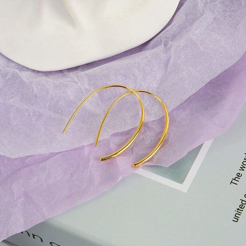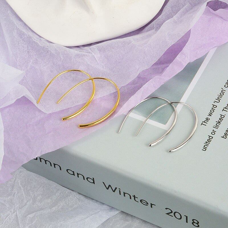 LIVVY シルバーカラー ミニマリスト 幾何学的 U字型 イヤリング ハンドメイド イヤリング パーティー アクセサリー ジュエリー ギフト 指輪 銀 Liv19365859044