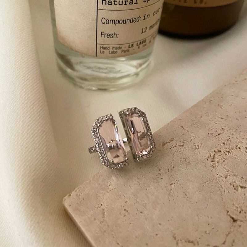 LIVVY シルバーカラー シンプル ジルコン クリスタル カラー リング レトロ オープニング ハンドメイド ファインジュエリー トレンド 指輪 銀 Liv93452013671