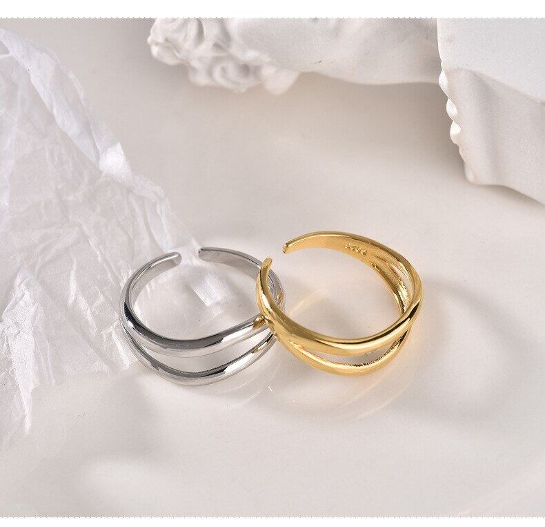 LIVVY シルバーカラー二層滑らかな調節可能なリング女性のカップルの誕生日パーティーファインジュエリーギフト アジャスタブル 指輪 銀 Liv3630463907