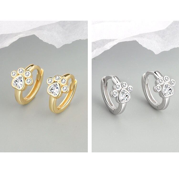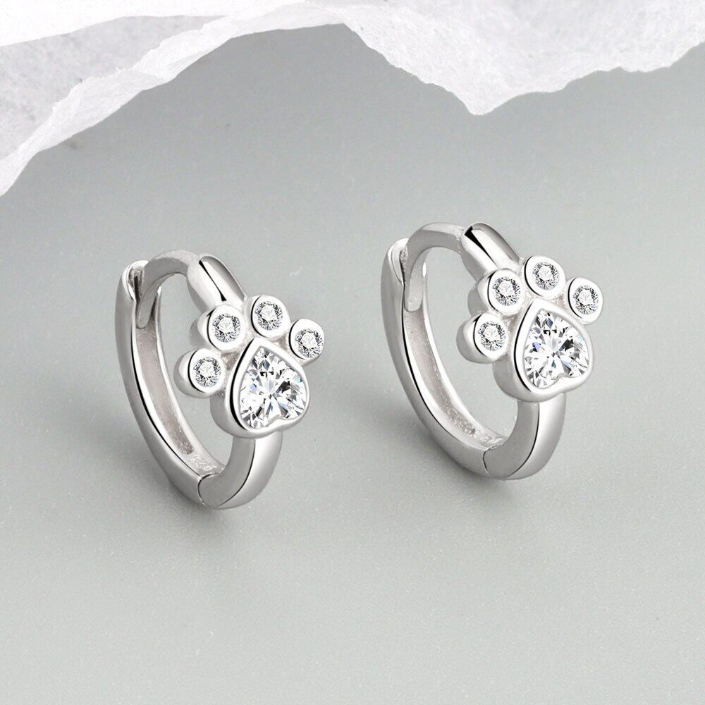 クリエイティブかわいい猫の爪の足跡シルバーカラーイヤリング女性ハート形ジルコン絶妙なジュエリー 大人ガーリー スウィート キュート カジュアル 銀 Liv95437063276