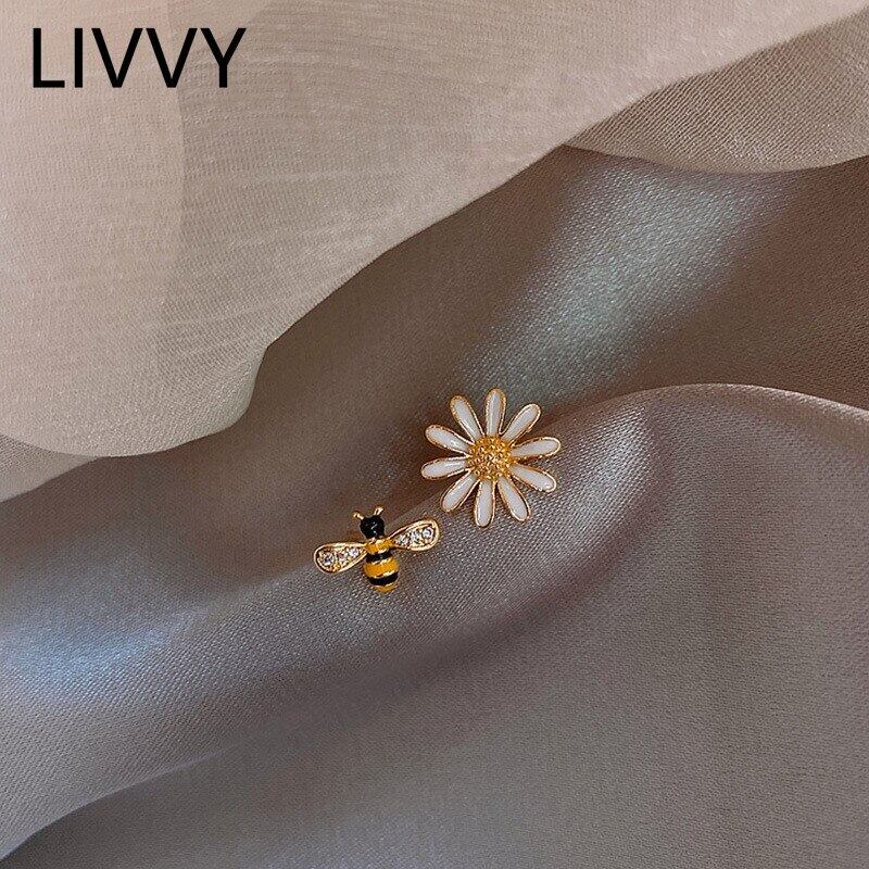 LIVVY フラワー アシンメトリー スタッド ピアス トレンディ かわいい 黒釉 蜂 パーティー ジュエリー レディース ブラック イヤリング 大人ガーリー スウィート キュート カジュアル リング 指輪 フラワーデザイン Liv16655814024