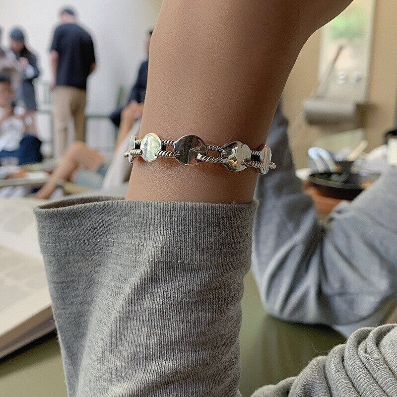 LIVVY シルバーカラートレンディな幾何学連結ラウンドブレスレット女性のクリエイティブパーティージュエリーギフト 銀 Liv60218584587