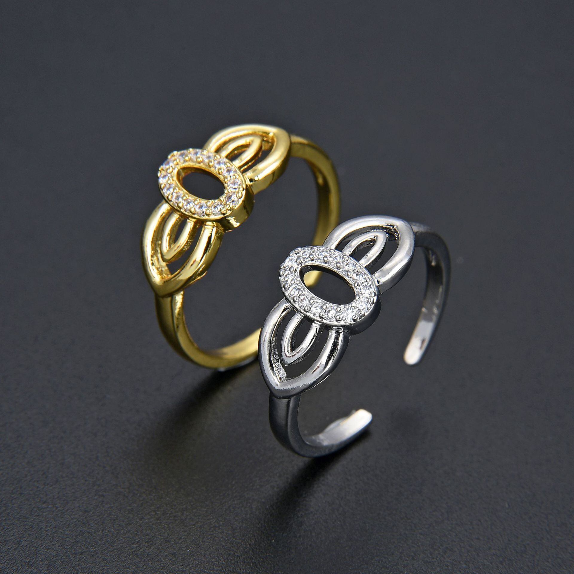 LIVVYSilver カラー クリエイティブ 中空 幾何学的 ちょう結び オーバル ジルコン 調節可能なリング シンプル ライト ラグジュアリー ジュエリー リボン アジャスタブル 指輪 シルバー 銀 Liv89102027479