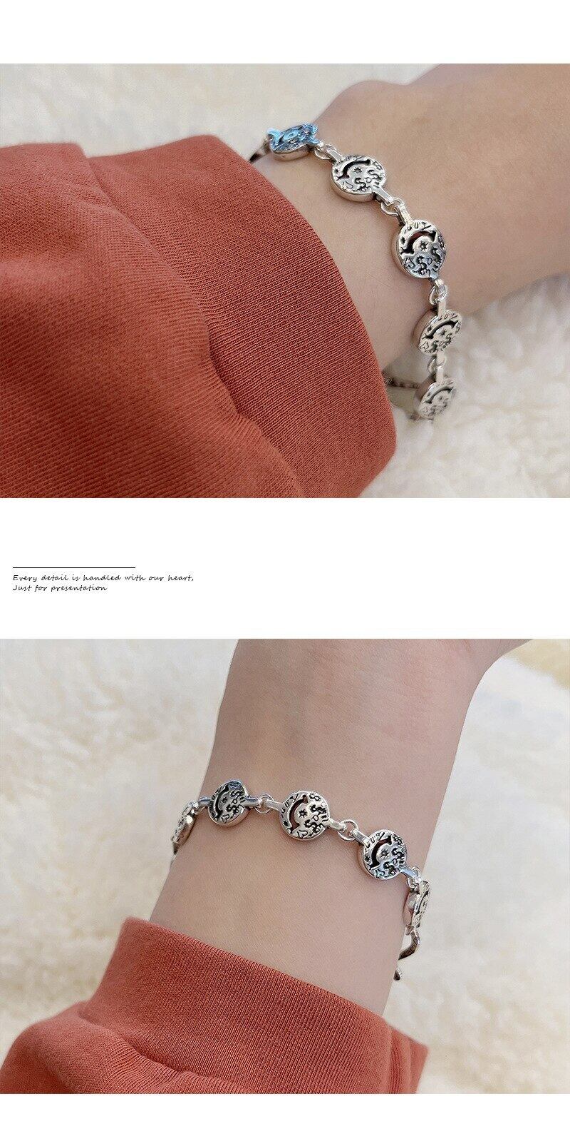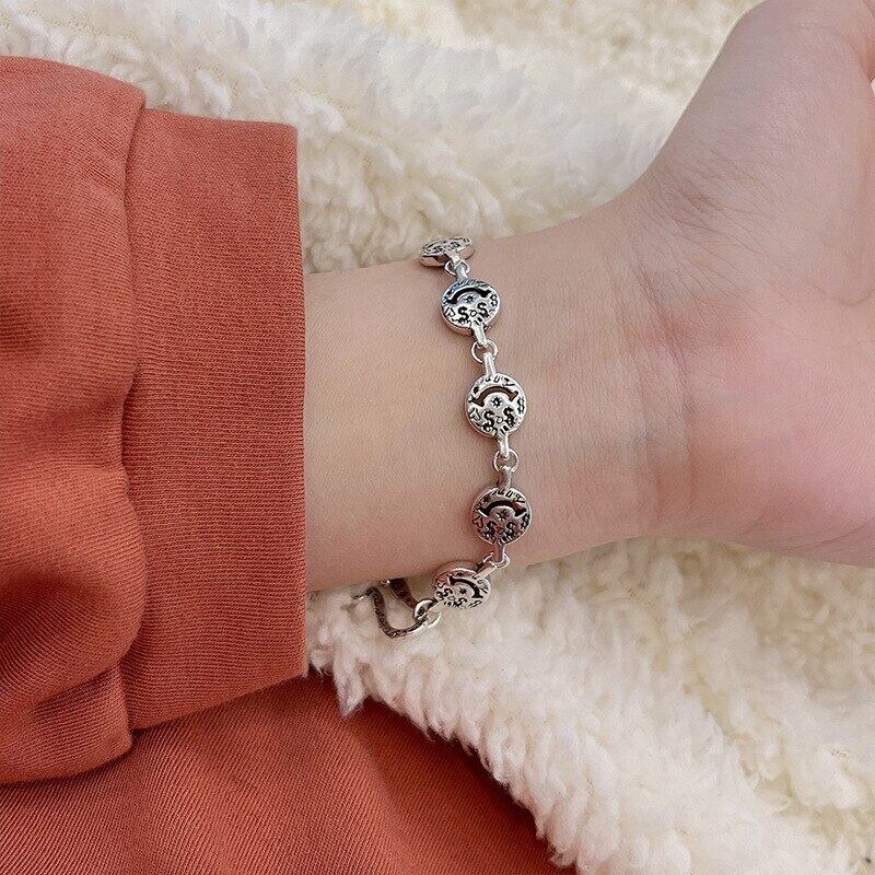 LIVVY シルバーカラーホット販売スマイリーフェイスチェーンブレスレットインヒップホップシンプルパンクパーティージュエリーギフト 銀 Liv54396554652