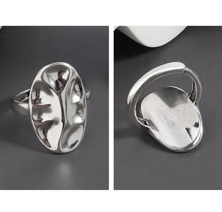 LIVVY シルバーカラー凹凸不規則な幾何学オーバルオープンリングレディースメンズパーティーギフトアクセサリー調節可能なジュエリー アジャスタブル 指輪 銀 Liv76755661812