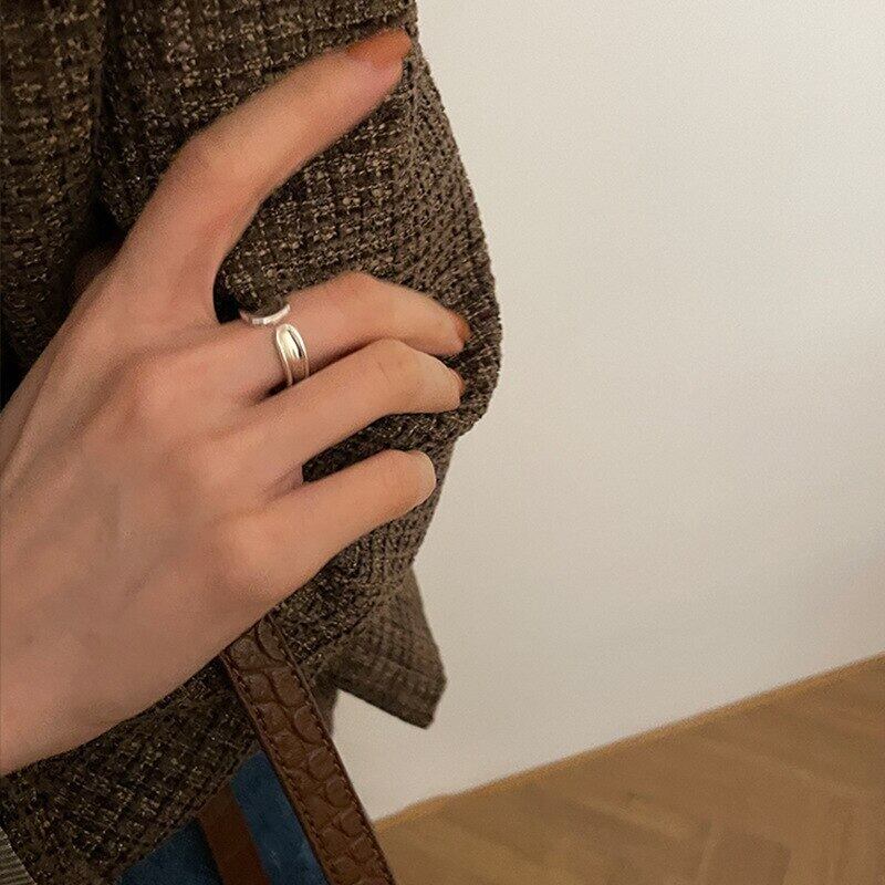 LIVVY シルバーカラーシンプルな不規則な幾何学人格調節可能なリング女性パーティートレンディなジュエリー アジャスタブル 指輪 銀 Liv22365501877