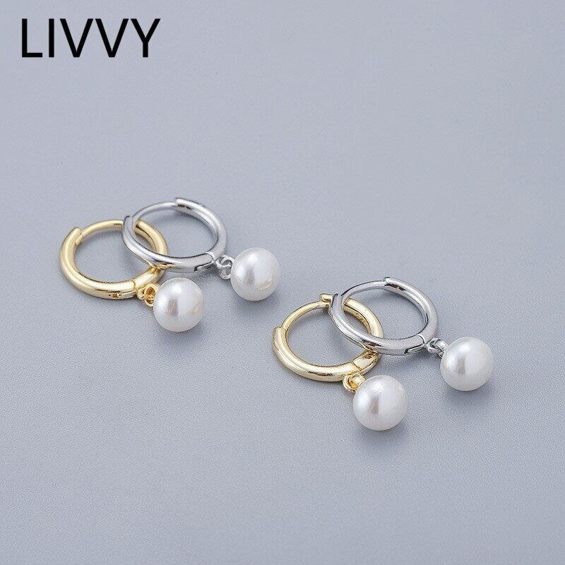 LIVVY ミニマリストシルバーカラーイミテーションパールイヤリング女性ガールトレンディなウェディングパーティーアクセサリーギフト 真珠 指輪 銀 Liv33200653421