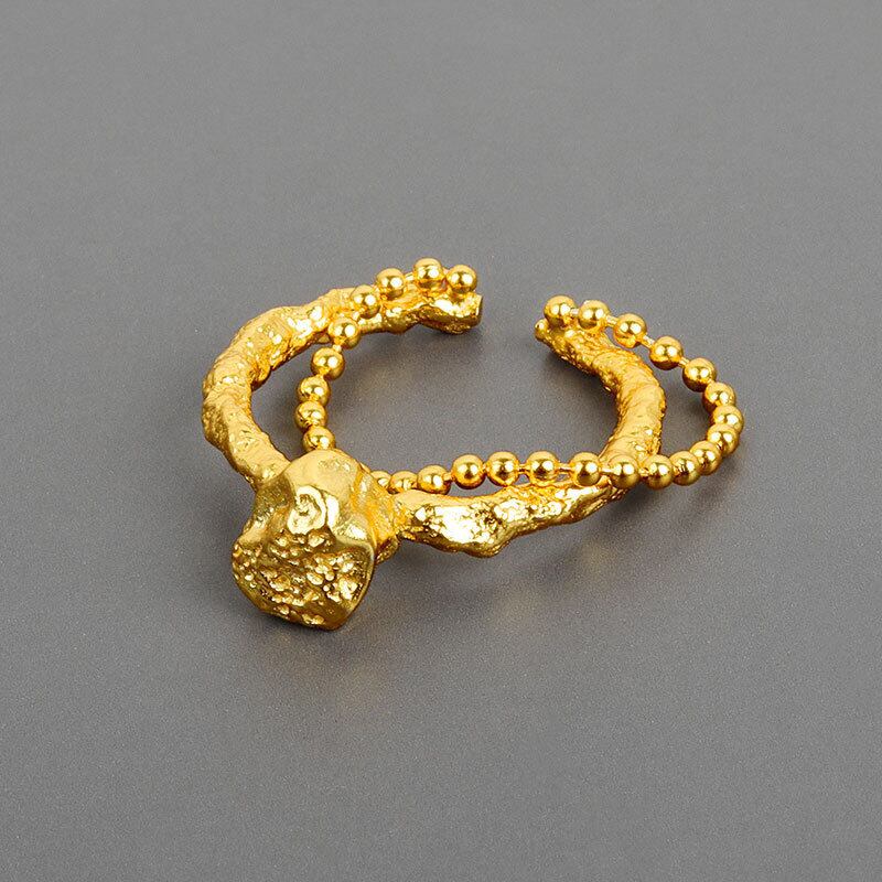 LIVVY シルバーカラー オープン 不規則な質感 リング ビーズ チェーン 二層 トレンディ ジュエリー パーティー ギフト 指輪 銀 Liv76866833393