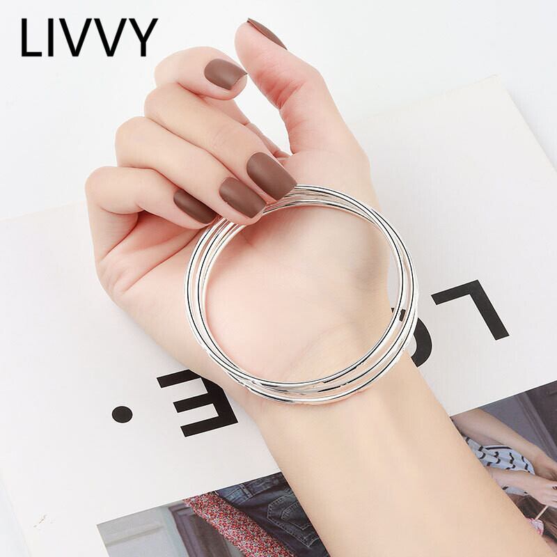 LIVVY シルバーカラーミニマリスト多層環状アートバングルブレスレット女性の気質シンプルなジュエリー マルチレイヤー 銀 Liv7297646483