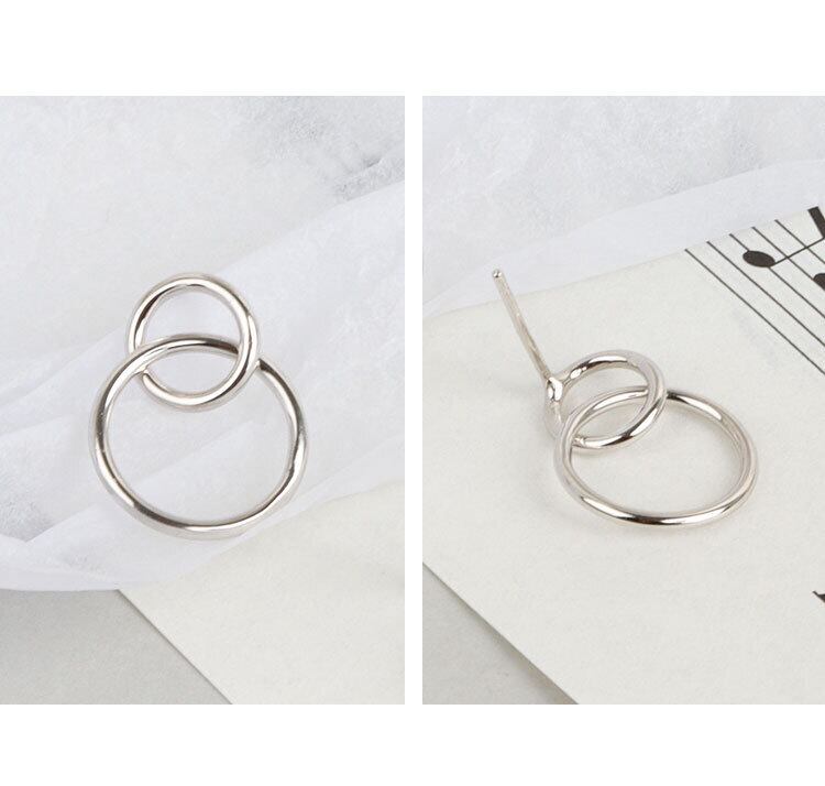 LIVVY シルバー カラー ジオメトリック ダブル サークル スタッド イヤリング レディース - 絶妙なジュエリー 指輪 銀 Liv75066815816