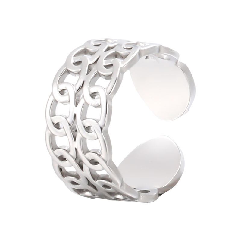 LIVVY スタイルシルバーカラーリング女性ダブルデッキ中空ラウンド婚約指輪ジュエリーアクセサリー 銀 Liv36129001755