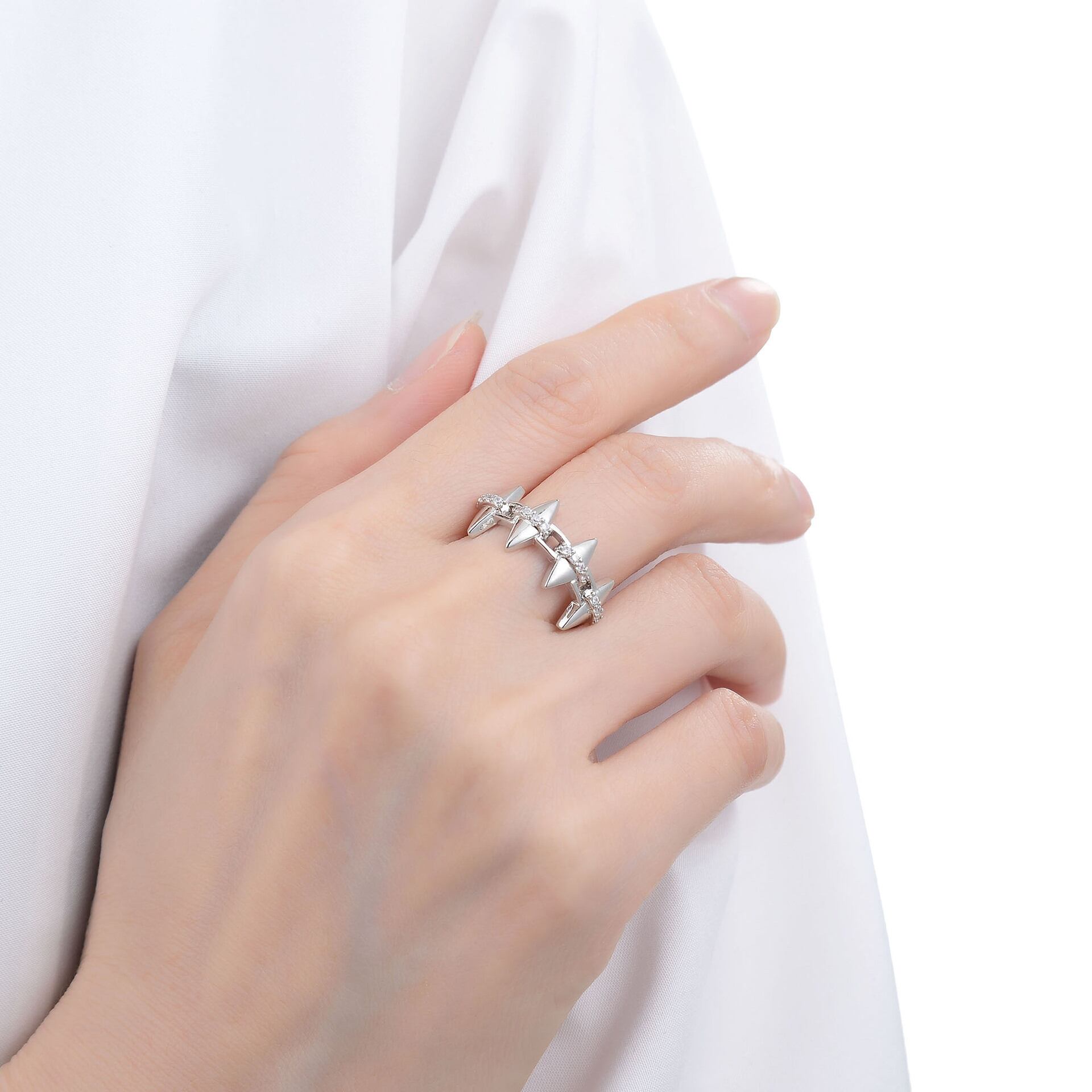 LIVVYSilver カラークリエイティブ幾何学ジルコンリング女性シンプルライトラグジュアリーパンクスタイル誕生日ギフトジュエリー 指輪 シルバー 銀 Liv6900923723