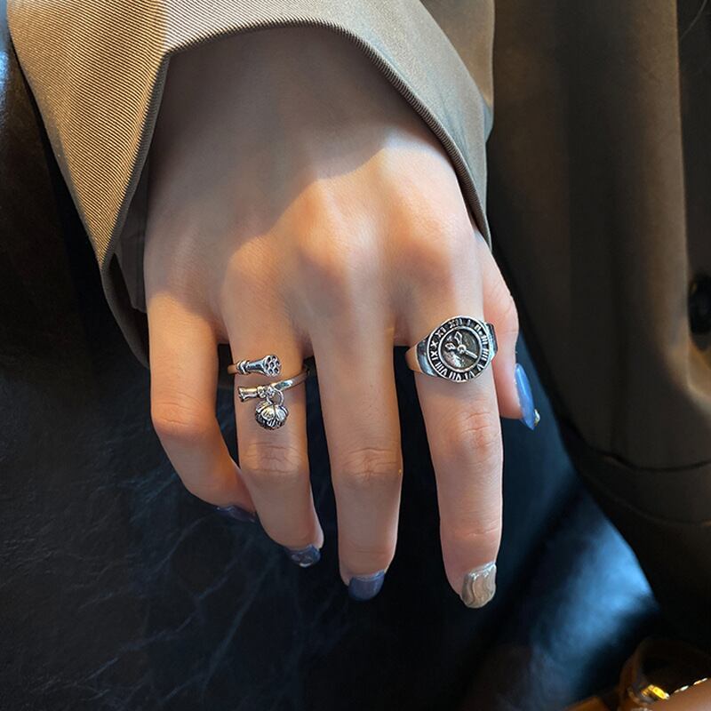 LIVVY タイシルバーカラーレトロ不規則な時計リング女性蓮の花チャームジュエリーパーティーギフト 指輪 フラワーデザイン 銀 Liv90679574124