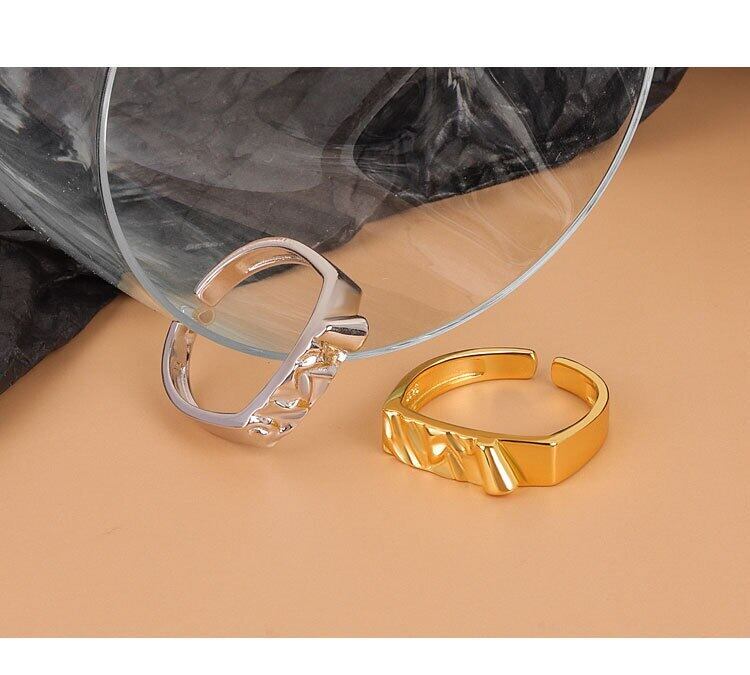 LIVVY シルバーカラー 長方形 不規則な凹凸面 調節可能なリング ユニークなジュエリー パーティーギフト アジャスタブル 指輪 銀 Liv35753444828
