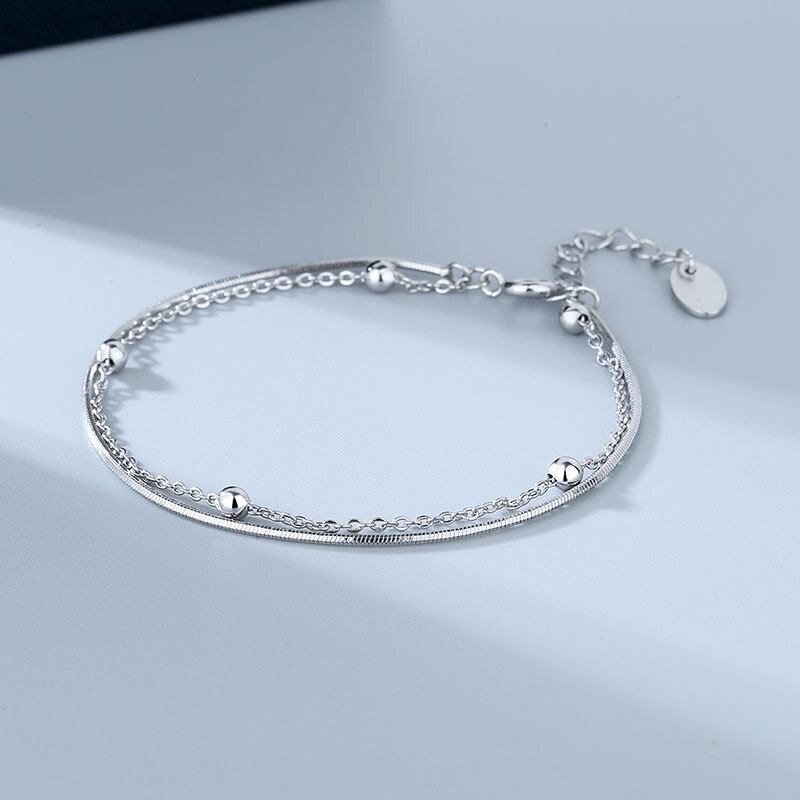LIVVY シルバーカラーのスネークチェーンシンプルなビーズ二層調節可能なバングルブレスレット女性トレンディなパーティージュエリー アジャスタブル 銀 Liv94781626919