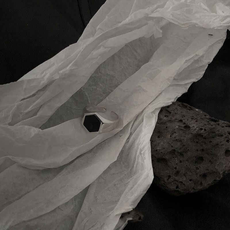 LIVVY シルバーカラー ダーク六角オープンリング レトロ シンプル 絶妙 ジュエリー アクセサリー 指輪 銀 Liv11627566077