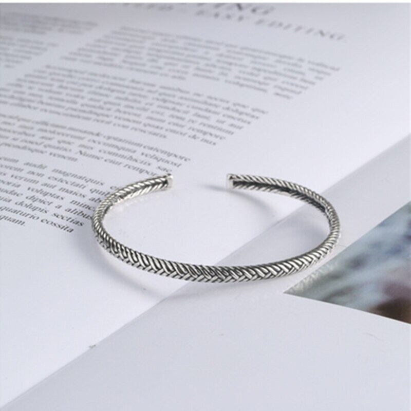 LIVVY タイシルバーカラーツイスト織ブレスレットニュートラルレトロ手作り絶妙なユニークなオープニングバングルギフト 銀 Liv6241125204