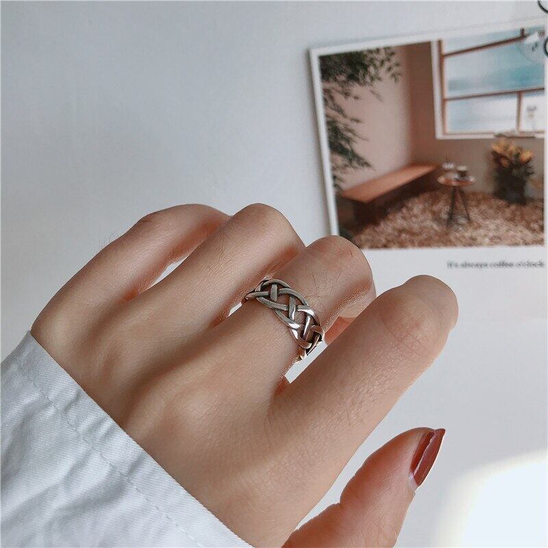 LIVVY シルバーカラー ツイスト ウーブン リング ビッグ スムース ワイド リング レトロ シンプル ライト ラグジュアリー ユーズド加工 オープン ジュエリー 指輪 銀 Liv73561955564