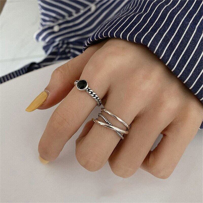 LIVVY シルバーカラートレンディリング女性ミニマリスト手作り黒指ジュエリーパンクヒップホップパーティーギフトトレンド ブラック 指輪 銀 Liv78754863517