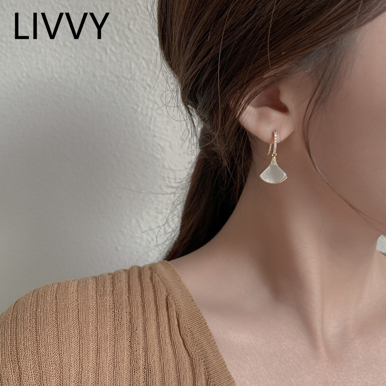 LIVVY スタイルの扇形のペンダント イヤリング トレンディな気質パーティー ジュエリー 指輪 Liv70186949817