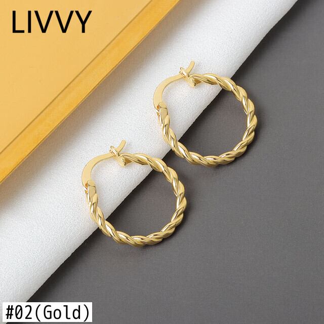 LIVVY シルバーカラーのシンプルなツイストロープ女性イヤリングアレルギー防止ジュエリー 2021 トレンド 指輪 銀 Liv87358937325