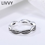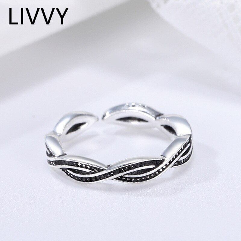 LIVVY タイシルバーカラーツイストウィーブクロスオープン指リング女性チャームジュエリー誕生日パーティージュエリーギフト 指輪 銀 Liv22093998836