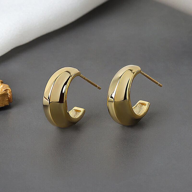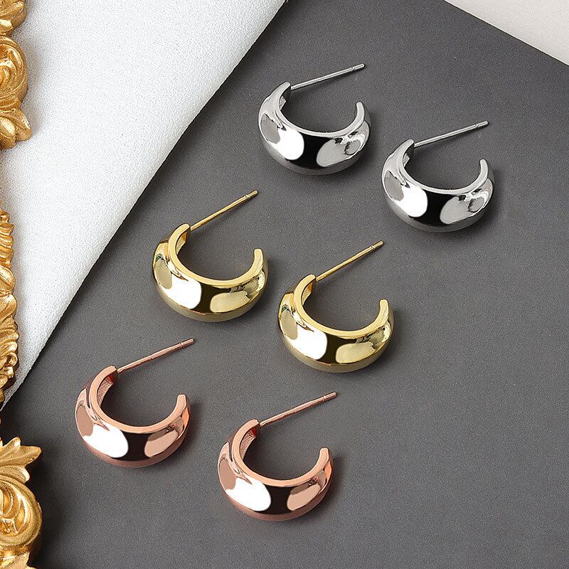 LIVVY シルバーカラー C 字型ワイド光沢イヤリング女性シンプルな幾何学的な耳の宝石 2021 トレンド 指輪 銀 Liv20042908005
