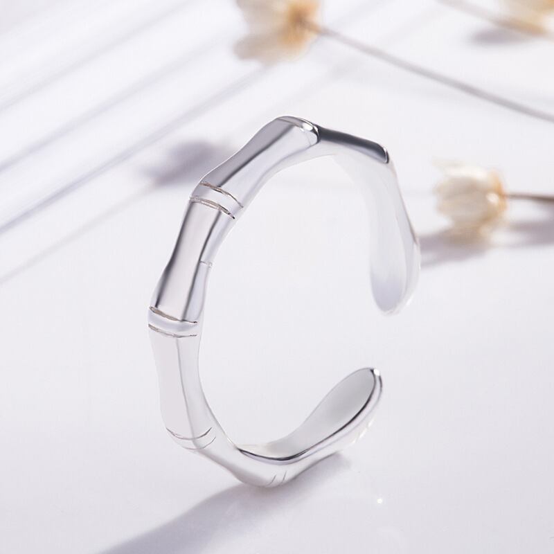 LIVVY シルバーカラーかわいいシンプルなジルコン竹スラブ指リング調節可能なリング女性ジュエリー 2021 トレンド 大人ガーリー スウィート キュート カジュアル アジャスタブル 指輪 銀 Liv36438264312