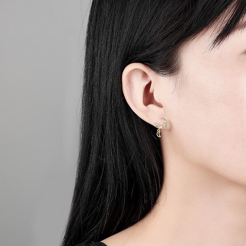 LIVVY シルバーカラー スタームーン ジルコン パール Tel ping イヤリング アシンメトリー 絶妙 ハンドメイド ギフト 真珠 指輪 銀 Liv69685348638