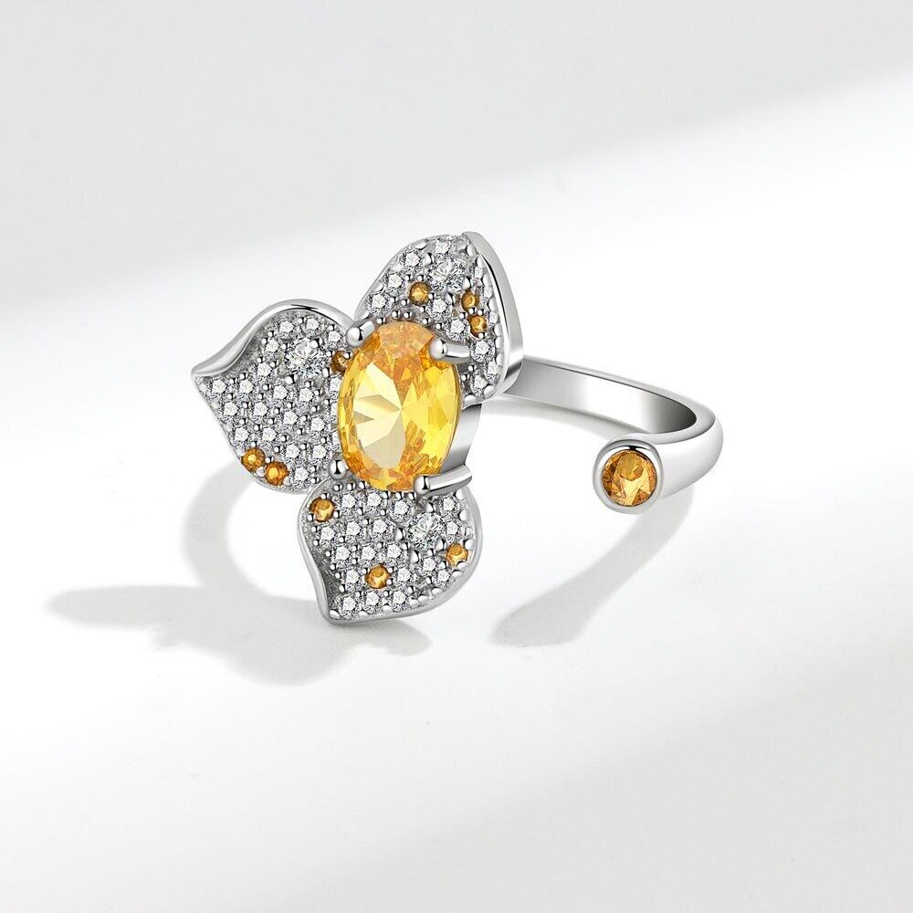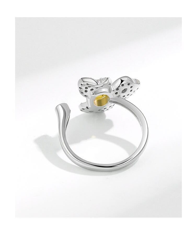 LIVVY シルバーカラークリエイティブミニチュアジルコン三葉の花オープンリング女性ファインジュエリーギフト 指輪 フラワーデザイン 銀 Liv94895780504