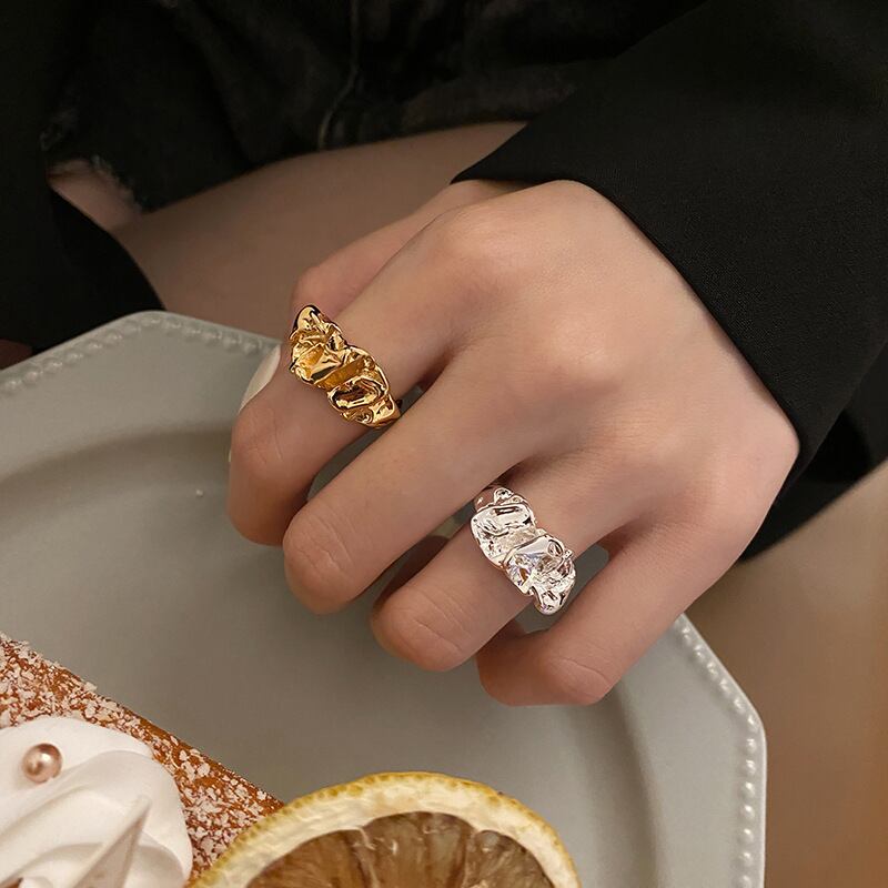 LIVVY シルバーカラークリエイティブティンフォイル凹凸不規則リング溶岩気質パーソナリティパーティージュエリーギフト 指輪 銀 Liv23792465317