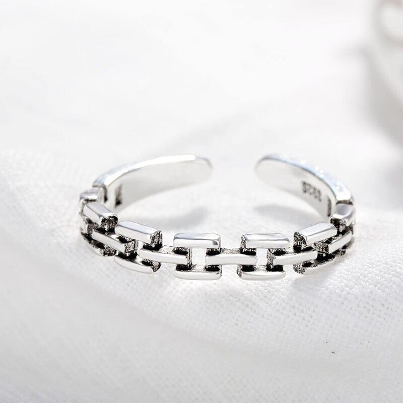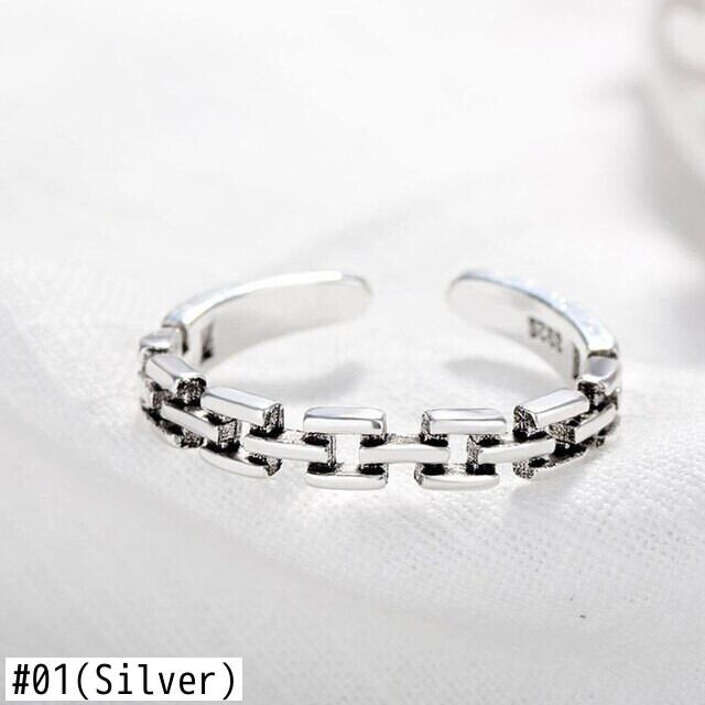 LIVVY シルバーカラーチェーンリング女性カップル手作りツイスト幾何指ジュエリーパーティーギフト 2021 トレンド 指輪 銀 Liv21666362672