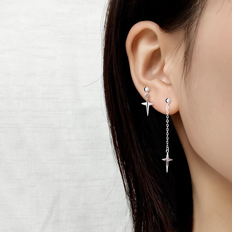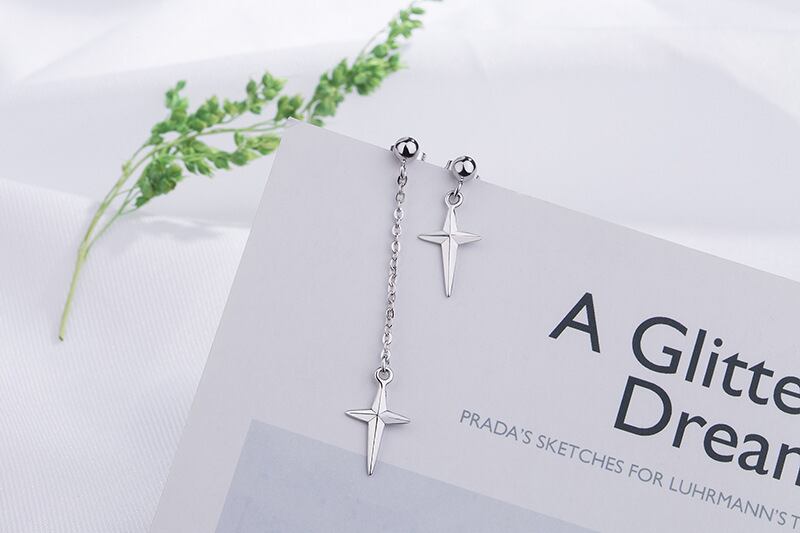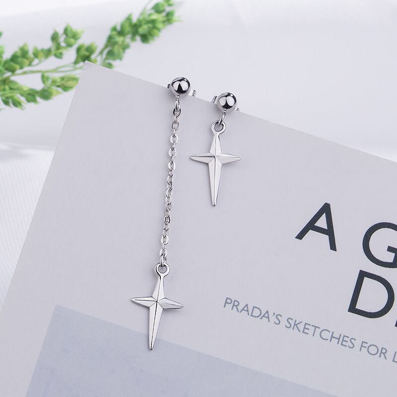 LIVVY シルバーカラー非対称シンプルなクロスペンダントイヤリング女性トレンディな誕生日パーティージュエリーギフト 指輪 銀 Liv95254440452