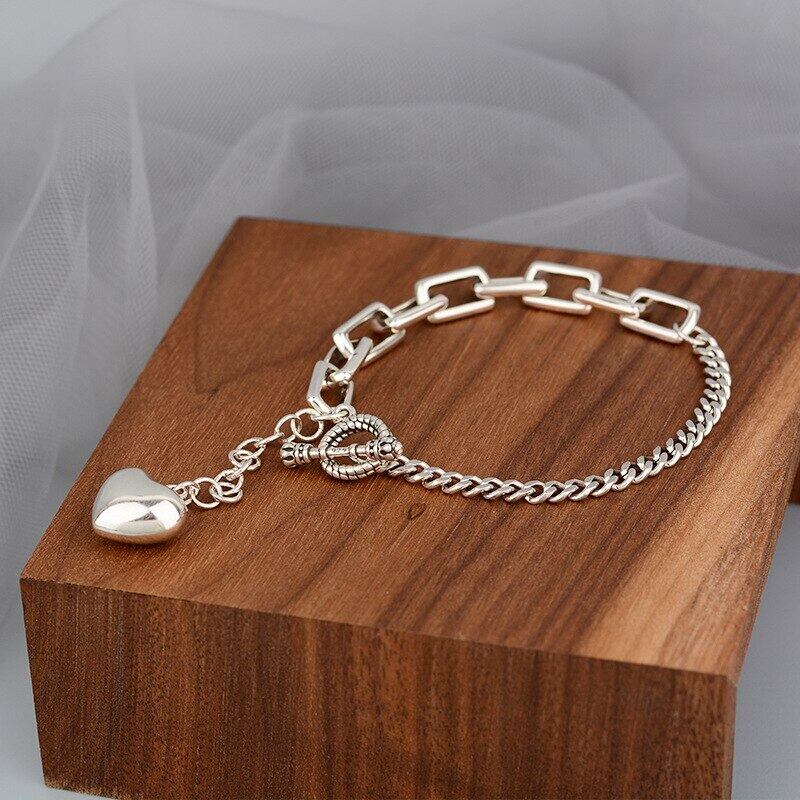 LIVVY シルバーカラースムーズな愛のハート形のペンダントブレスレット女性女の子シンプルなロマンチックな誕生日パーティーの宝石類のギフト 銀 Liv43058210375