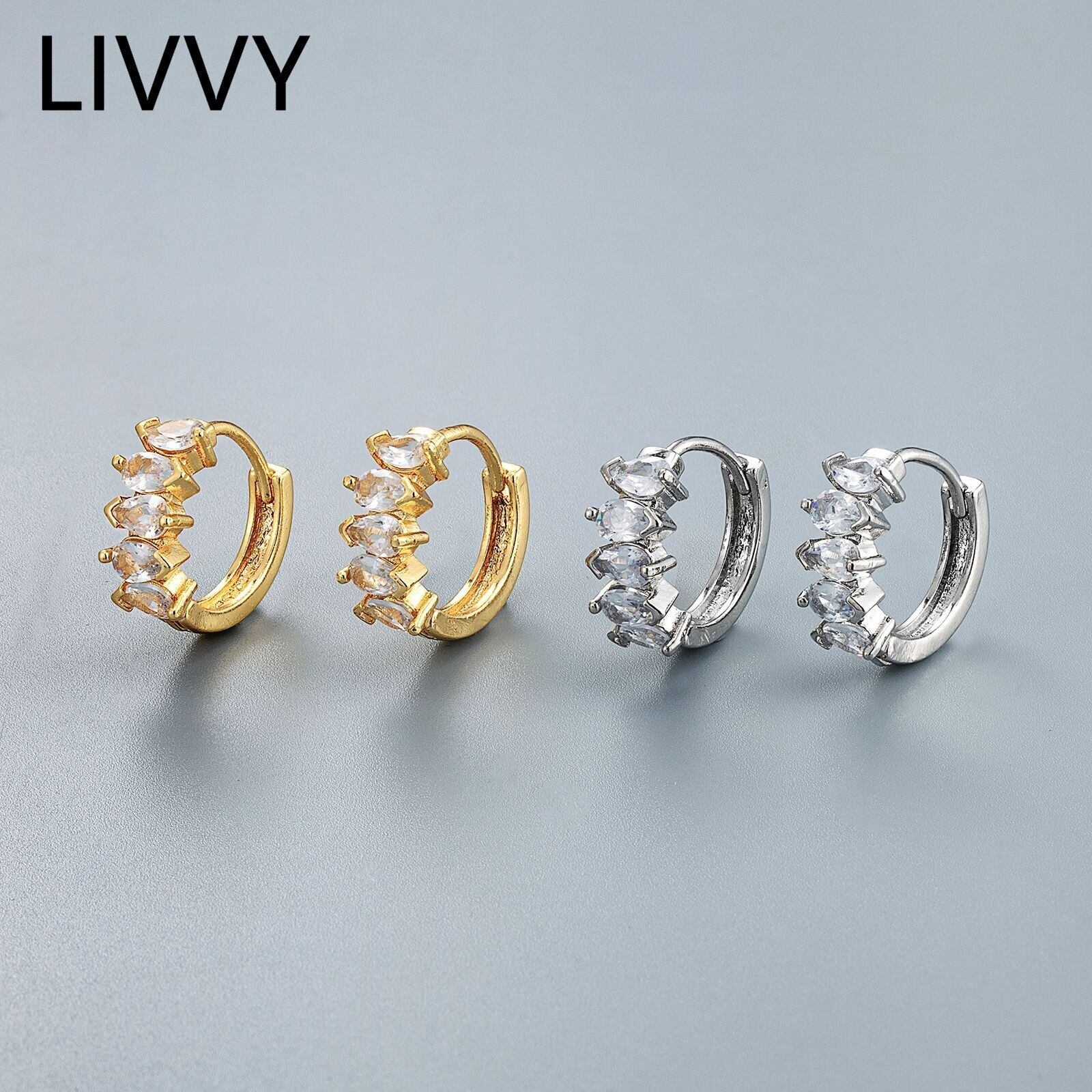 LIVVY シンプルな水の形のクリスタルジルコンフープイヤリング女性の結婚式のミニマリストファインジュエリー 指輪 Liv94845093994