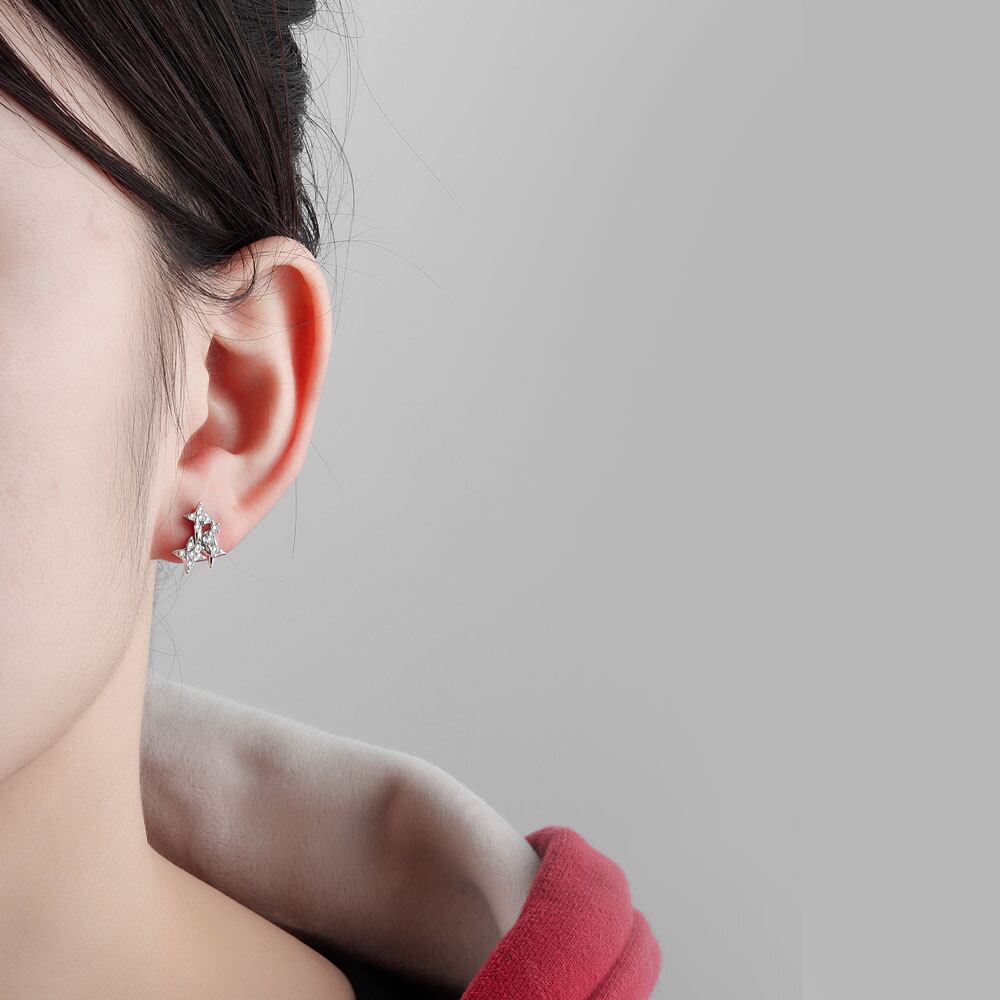 LIVVY 2022 シルバーカラースタージルコンスタッドピアス女性ガールズライト高級トレンディな気質パーティーアクセサリー イヤリング リング 指輪 銀 Liv92512798275