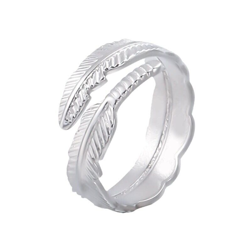 LIVVY トレンディなシルバーカラーレトロフェザーオープンリングレディースメンズジュエリーオーナメント調節可能 アジャスタブル 指輪 銀 Liv50389604070